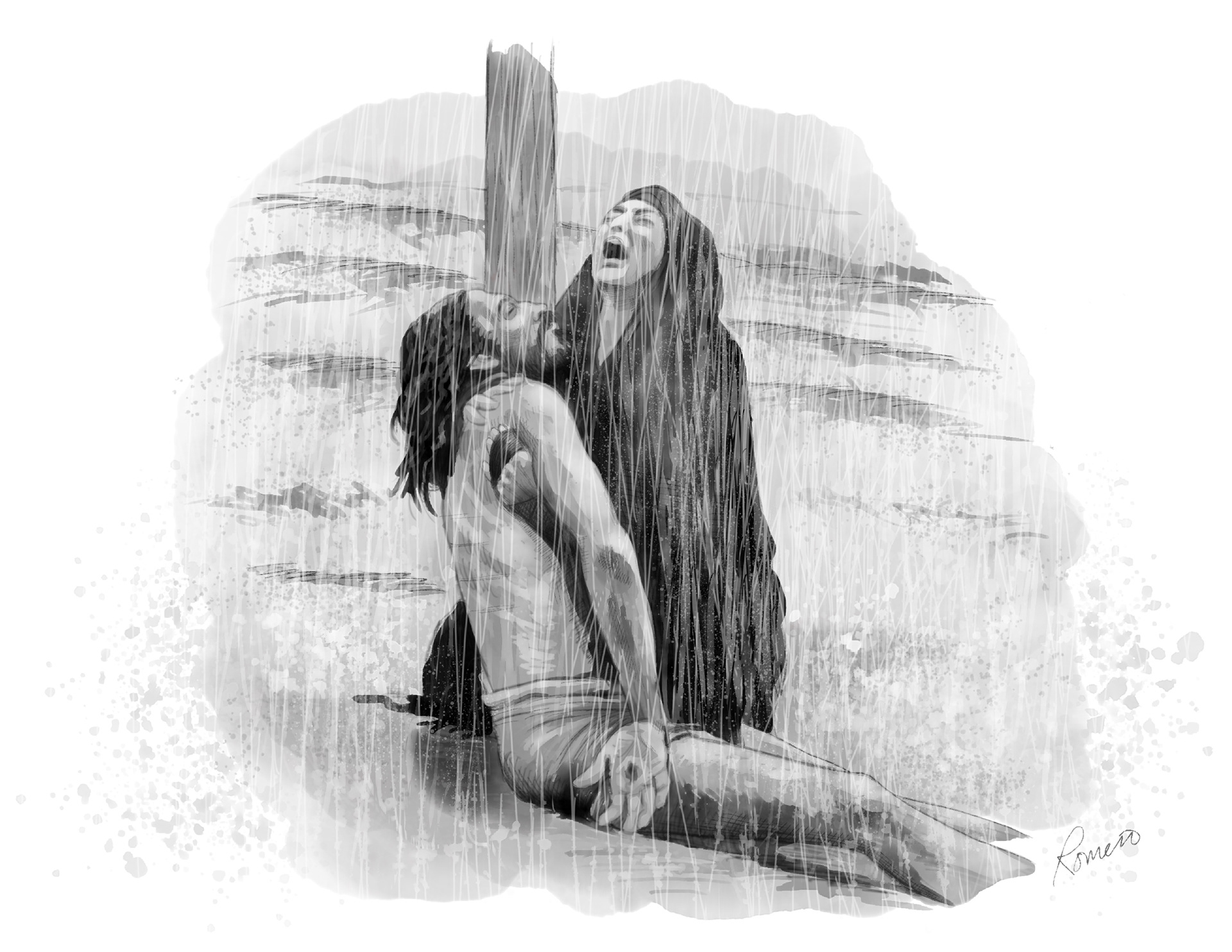 “Rain on the Just” Digital Watercolor made on my iPad. This piece was painted based on a challenge from the River Ridge Association of Fine Arts in Spokane, Washington. The theme was “Rain”. I had just recently watched “Jesus of Nazareth”. This painting was inspired by a scene in that movie. “That ye may be the children of your Father which is in heaven: for he maketh his sun to rise on the evil and on the good, and sendeth rain on the just and on the unjust.” - Matthew 5:45 KJV